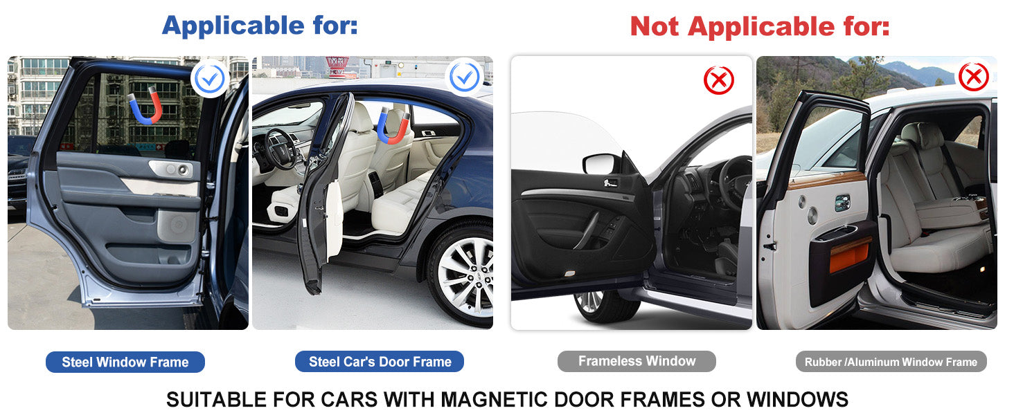- đăRead Before OrderingăThis product is a magnetic car sunshade specially designed for steel window frames or steel side door frames. Please note: Not suitable for aluminum frames or rubber frames.