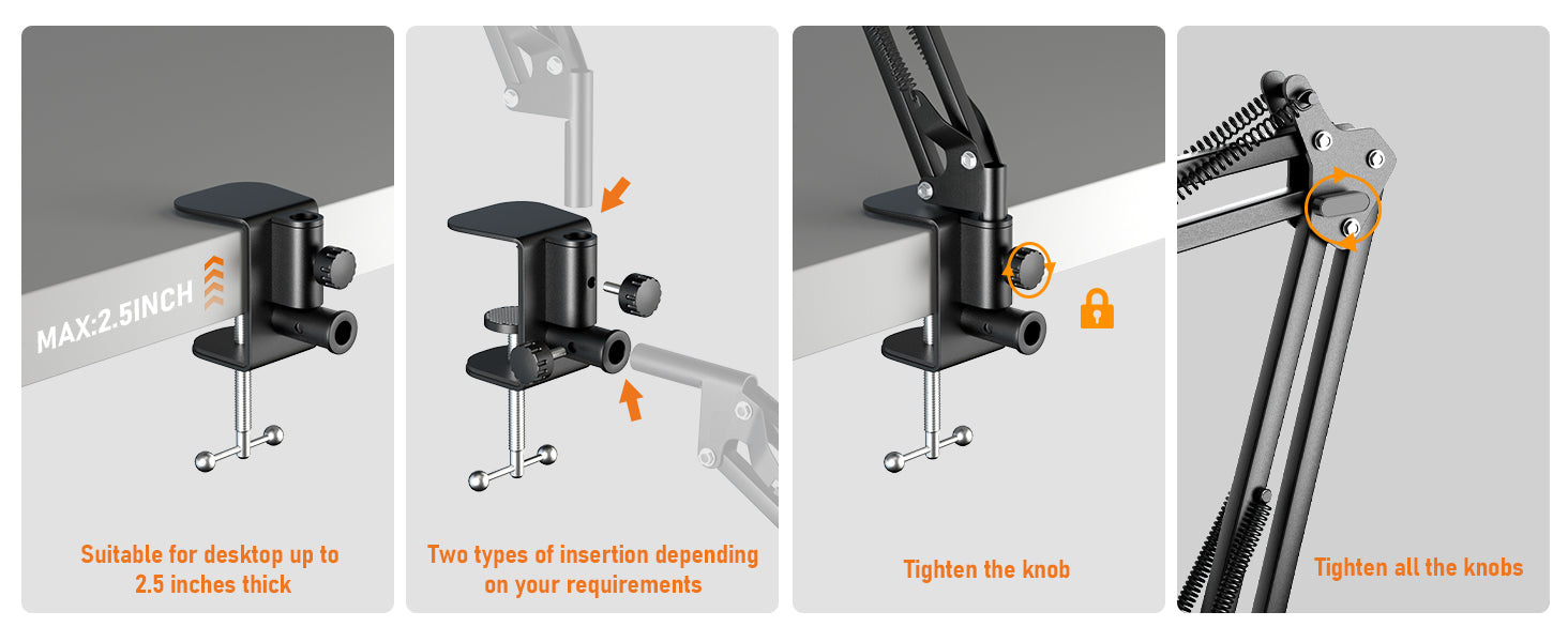 - VERTICAL AND HORIZONTAL: The base is equipped with two sockets for vertical and horizontal use of the stand and a foam cushion that does not damage the headboard. *When changing from vertical to horizontal position, turn the mounting screws to secure them in place of mounting holes.