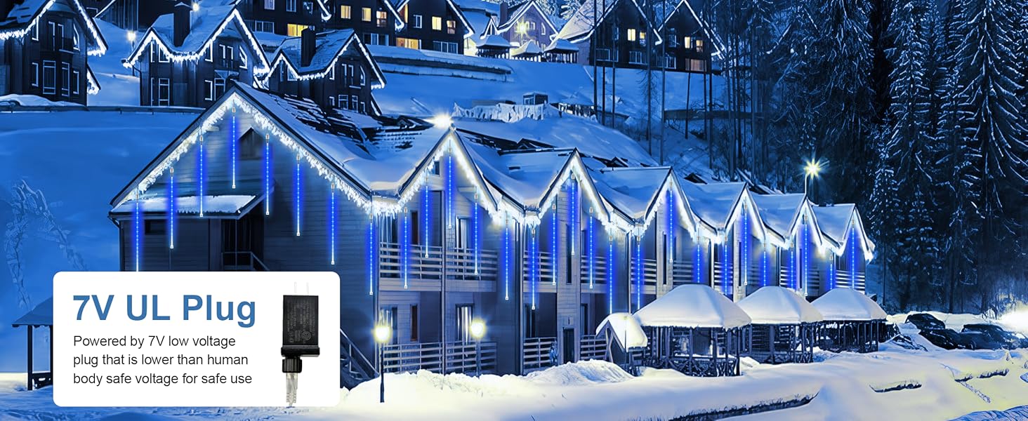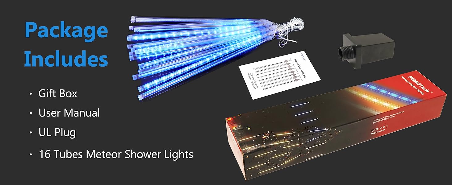 - 【High Quality and Safety】Made of high-quality PC material, transparent and sturdy, corrosion-resistant and aging-resistant; UL certified, equipped with a transformer, meteor shower lights will work at a low voltage of 7V, which is lower than the human safety voltage.